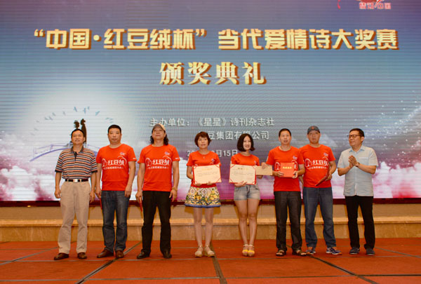 8月15日,備受關注的“中國?紅豆絨杯”當代愛情詩大獎賽各項獎在無錫紅豆杉莊正式揭曉,來自湖南長沙的宋志剛以組詩《紅豆,那顆磅礴的心跳》在4.62萬首投稿詩作中脫穎而出,獲得特等獎。