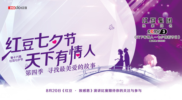 8月28日七夕當晚19:30,由紅豆集團獨家冠名的中央電視臺綜藝頻道2017年七夕特別節(jié)目《紅豆七夕節(jié) 天下有情人》正式播出。