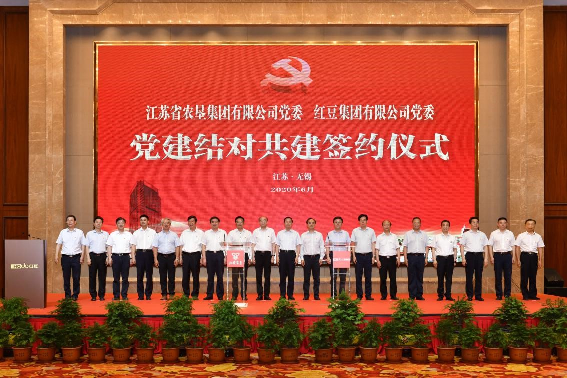 民企和國(guó)企強(qiáng)強(qiáng)聯(lián)合,以高質(zhì)量黨建引領(lǐng)高質(zhì)量發(fā)展。6月12日,紅豆集團(tuán)有限公司黨委、江蘇農(nóng)墾集團(tuán)有限公司黨委黨建共建簽約儀式在紅豆杉莊舉行,旨在不斷增強(qiáng)企業(yè)黨組織的政治功能和組織力,提升新時(shí)代黨建工作質(zhì)量和成效,促進(jìn)雙方黨建工作和業(yè)務(wù)經(jīng)營(yíng)深度合作,同時(shí)也是創(chuàng)新國(guó)企、民企黨建結(jié)對(duì)共建模式的積極探索。